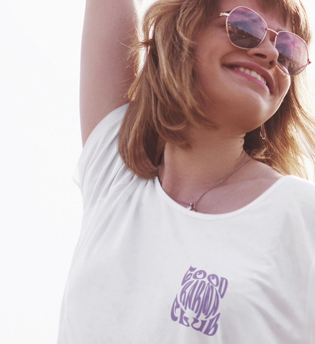 Werde Mitglied im "GOOD KARMA CLUB" mit diesem beidseitig bedrucktem T-Shirt in Bio-Qualität
