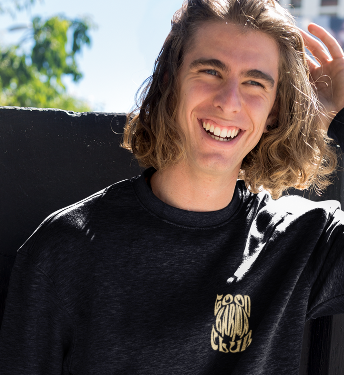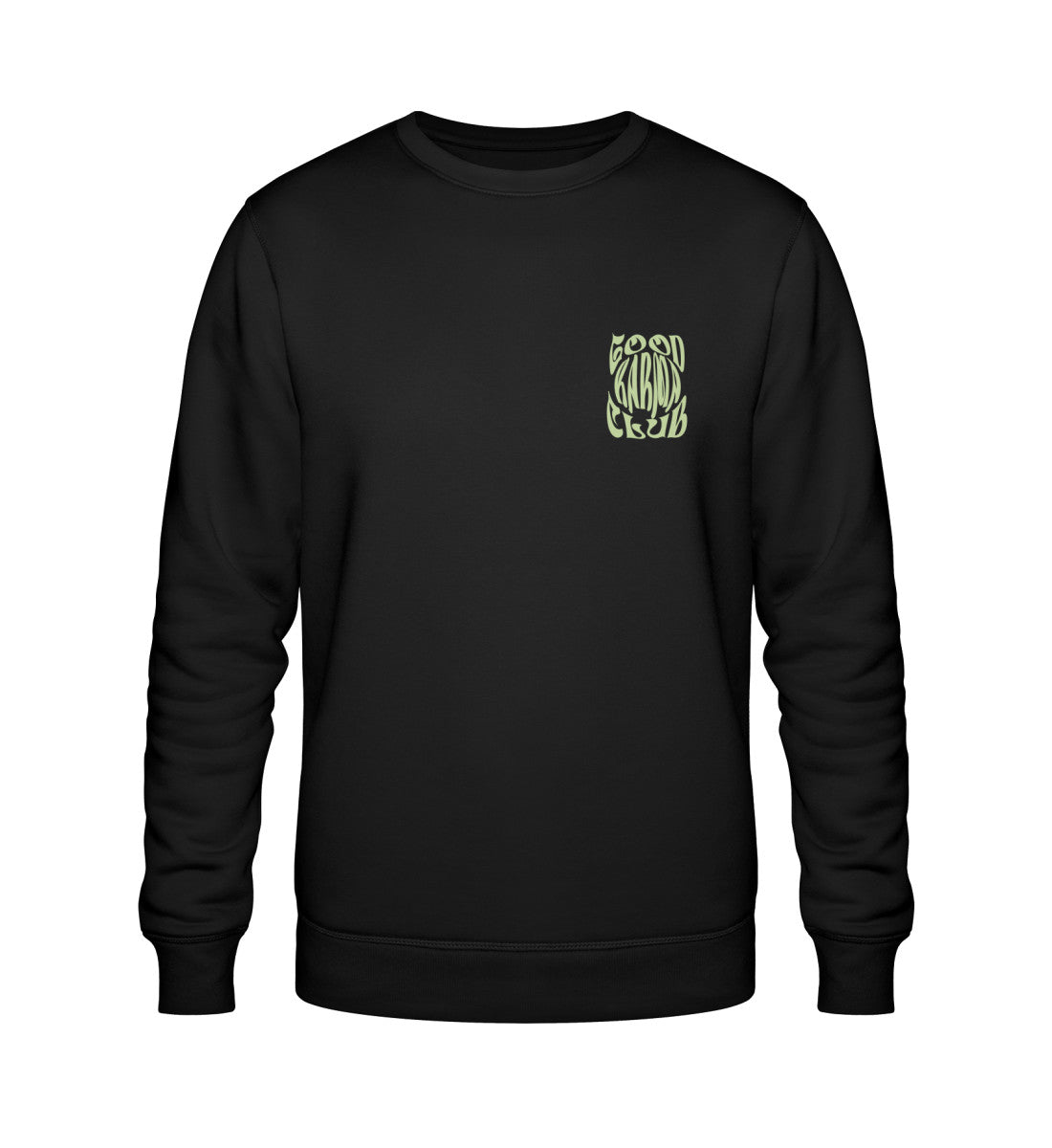 Werde Mitglied im "GOOD KARMA CLUB" mit diesem beidseitig bedrucktem Sweatshirt (schwarz) in Bio-Qualität.